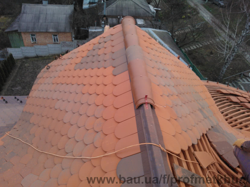 Материал кровли- керамическая черепица Tondach Бобровка микс