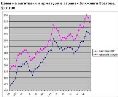 Правда, в середине июня у поставщиков из Турции и СНГ появились неожиданные конкуренты. Полуфабрикаты в страны Персидского залива начали предлагать японские и корейские компании, причем, запрашиваемые ими цены – $690-710 за т CFR – были в тот момент ниже, чем у российских или турецких экспортеров.